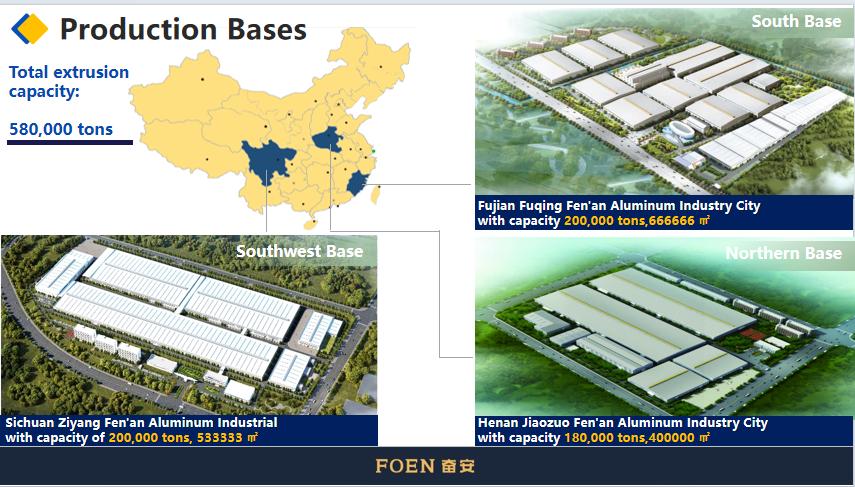 FENAN ALUMINUM CO., LTD., didirikan pada tahun 1988, adalah entitas manufaktur cerdas komprehensif yang mengkhususkan diri dalam R&D, produksi, dan penjualan langsung berbagai produk aluminium, termasuk profil aluminium arsitektur, profil aluminium industri Bahasa Indonesia: aluminium ringan otomotif , Dan sistem pintu dan jendela Dengan total luas lebih dari 2.000 hektar dan delapan basis produksi, perusahaan ini memiliki kemampuan penelitian yang kuat melalui lembaga penelitian teknologi aluminium dan sekolah bisnisnya.